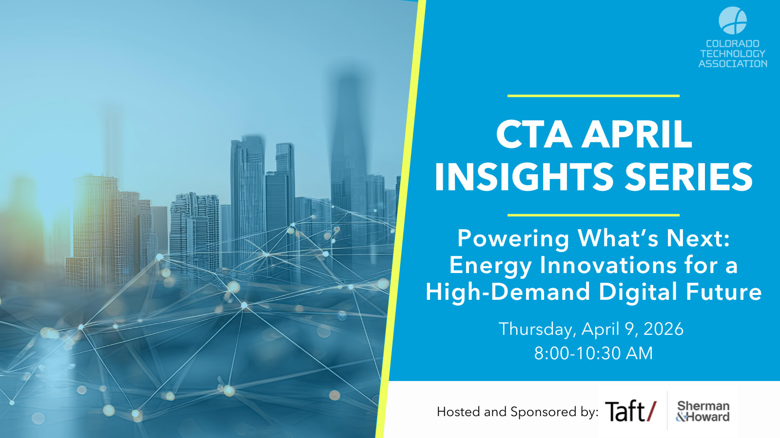 CTA is committed to accessible, inclusive events. If you need accommodations (such as ASL, captioning, assistive listening, or alternative materials), please contact us at accessibility@coloradotechnology.org or 303-592-4070. Requests fourteen (14) days in advance are encouraged; we will make every reasonable effort to meet late requests.